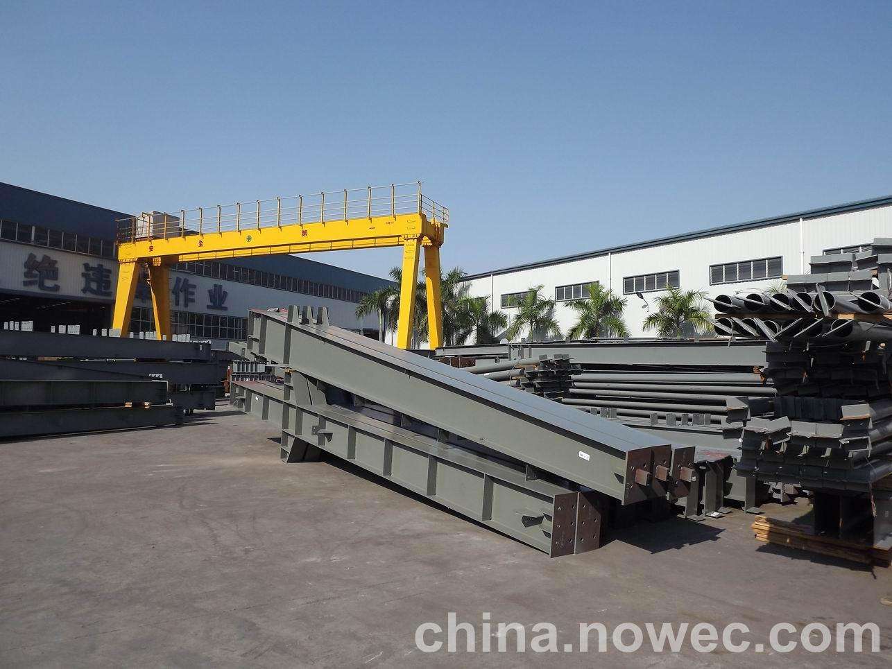 条状单元一般沿长跨方向分割,其宽度约为1~3个网格,其长度为l2或l2/2(l2为短跨跨距)。块状单元一般沿滕州网架平面纵横向分割成矩形或正方形单元。每个单元的重量以现有起重机能胜任为准。条(块)与条(块)之间可以直接拼装,也可空一网格在高空拼装。由于条(块)状单元是在地面拼装,因而高空作业量较高空散装法大为减少,拼装支架也减少很多,又能充分利用现有起重设备,故较经济。这种安装方法适用于分割后网架的钢度和受力状况改变较小的各类中小型网架,如两向正交正放四角锥、正放抽空四角锥等网架。